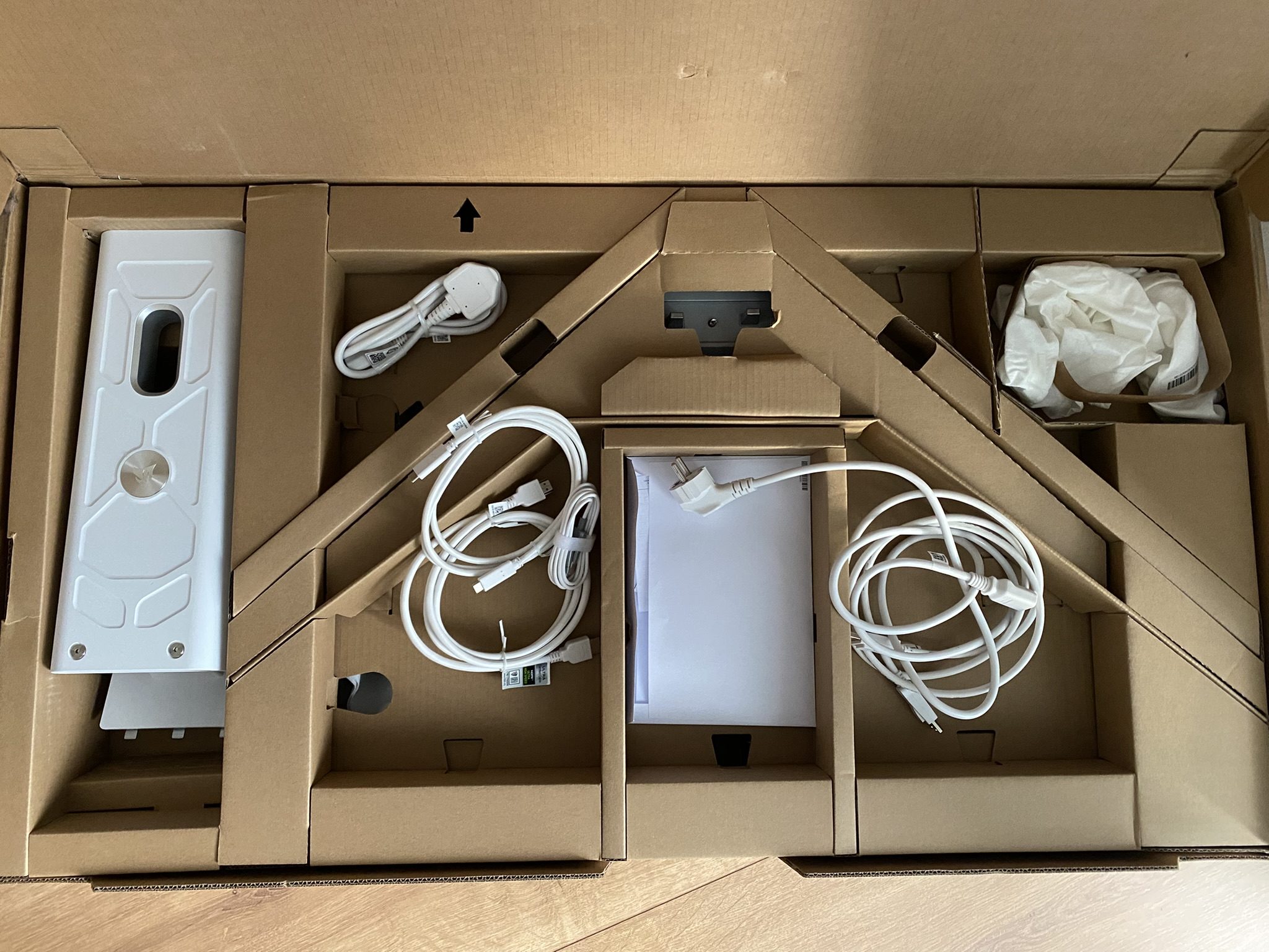 This is the first packaging that consists purely of cardboard, which is very commendable. The packaging is quite sturdy, as I am not the first person to unpack this monitor. As nice as the packaging is, it in no way explains the extra charge!