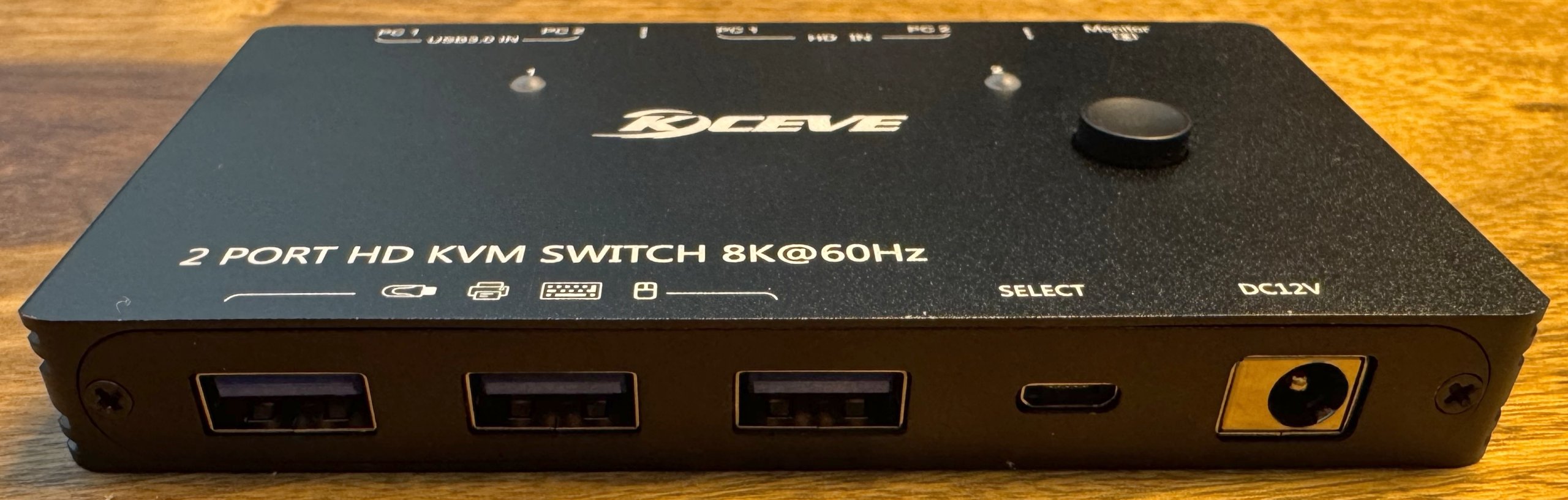 Technically, the KC-KVM8201 offers some interesting features, including support for various resolutions up to 8K at 60Hz and 4K at 120Hz. It also has two HDMI inputs for video and a monitor output at the rear, as well as the two USB 3.x connections to the two source PCs.