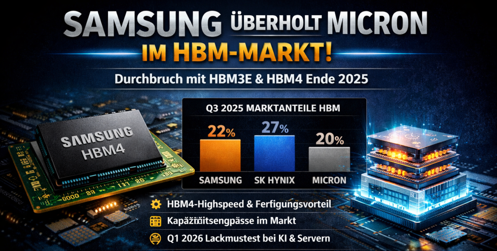 The fact that Samsung is now ahead of a direct competitor again is relevant in this context, but not an end point. Market shares in the HBM segment are volatile because they depend heavily on individual platform launches, ramp timings and delivery commitments. Sustainability will only come about when several generations are passed through without new breaks and customers not only test HBM, but firmly plan it into their roadmaps. The real benchmark will therefore not be a single quarter, but the phase from the beginning of 2026, when HBM4 will be integrated into productive AI systems on a larger scale.