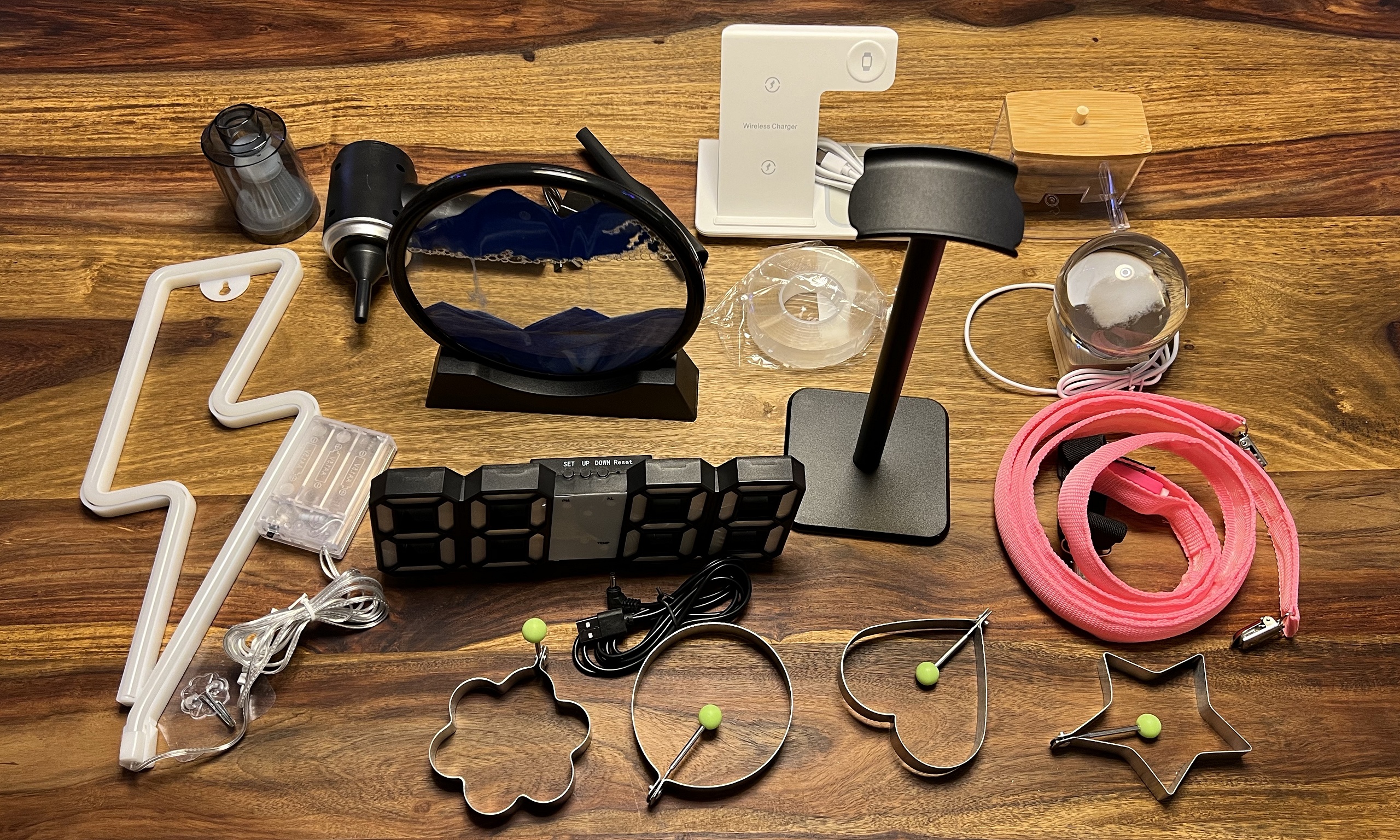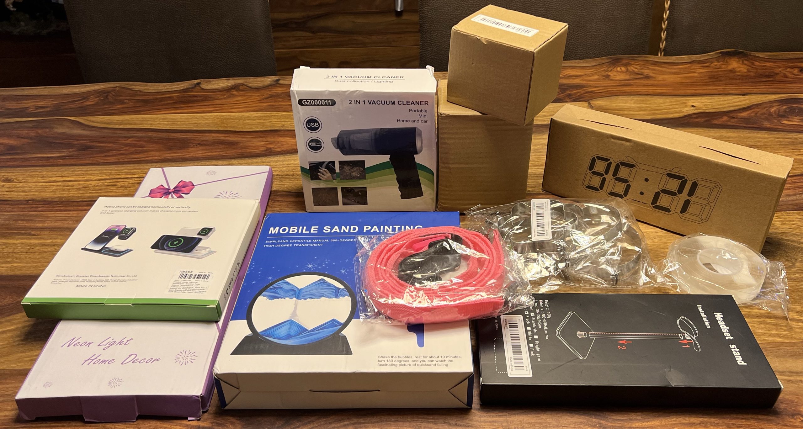 …and frees the contents from all shackles and fluff. Suddenly everything looks much less and you start to wonder where all the money has gone. Almost everything is smaller than it seemed on the photos at Temu. And if there were measurements, then only in inches. But most of it was without size information anyway. That this can take revenge, you can read in the individual tests.
