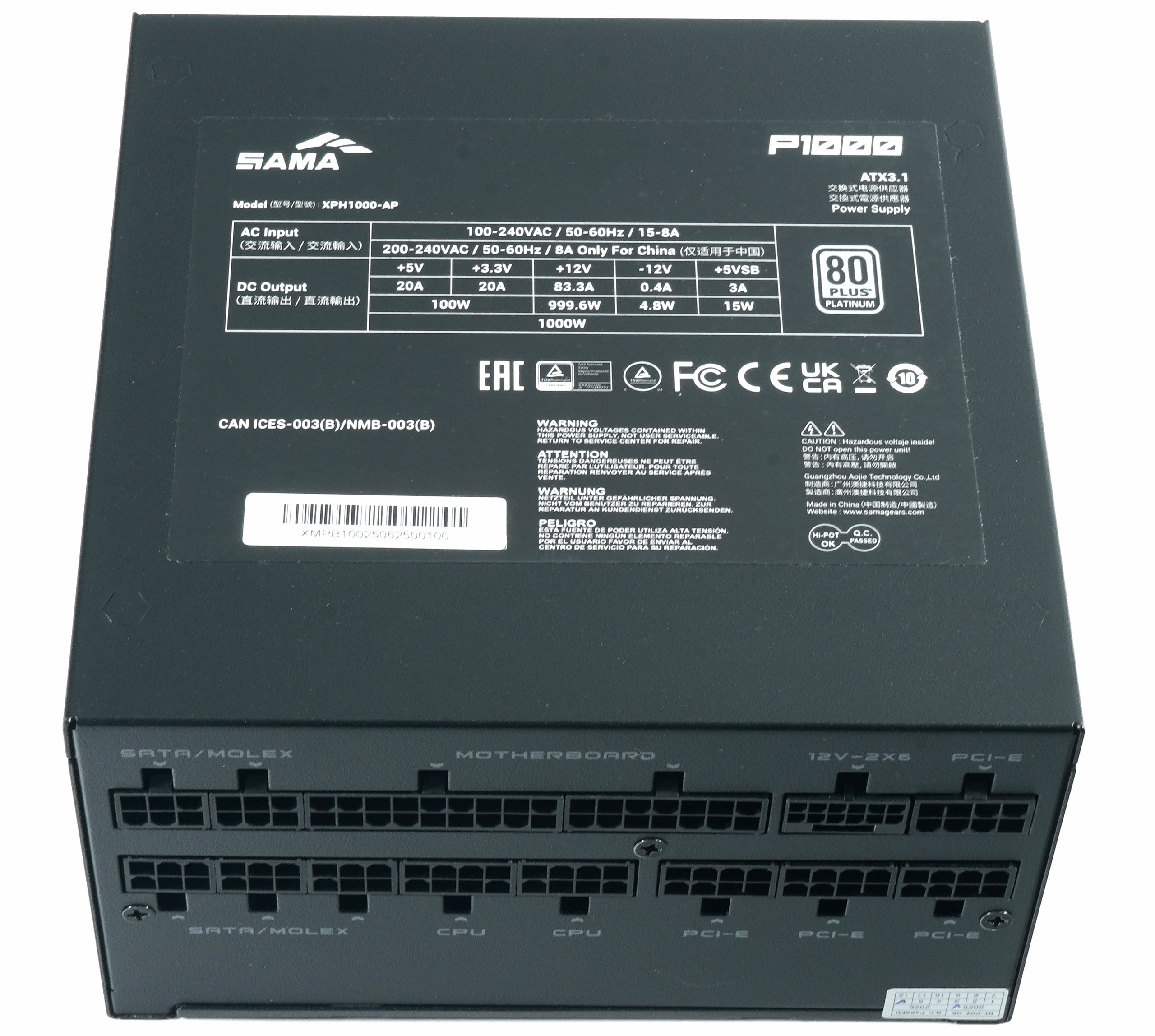 | Model designation | XPH1000-AP (SAMA P1000 ATX 3.1) |