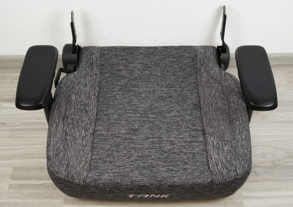 The seat comes with pre-assembled armrests and is definitely the widest I’ve tested so far.