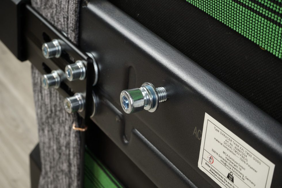 On the underside, we get a small insight into the construction of the TANK – the material thicknesses and screw diameters leave no doubt that this is an XXL chair.