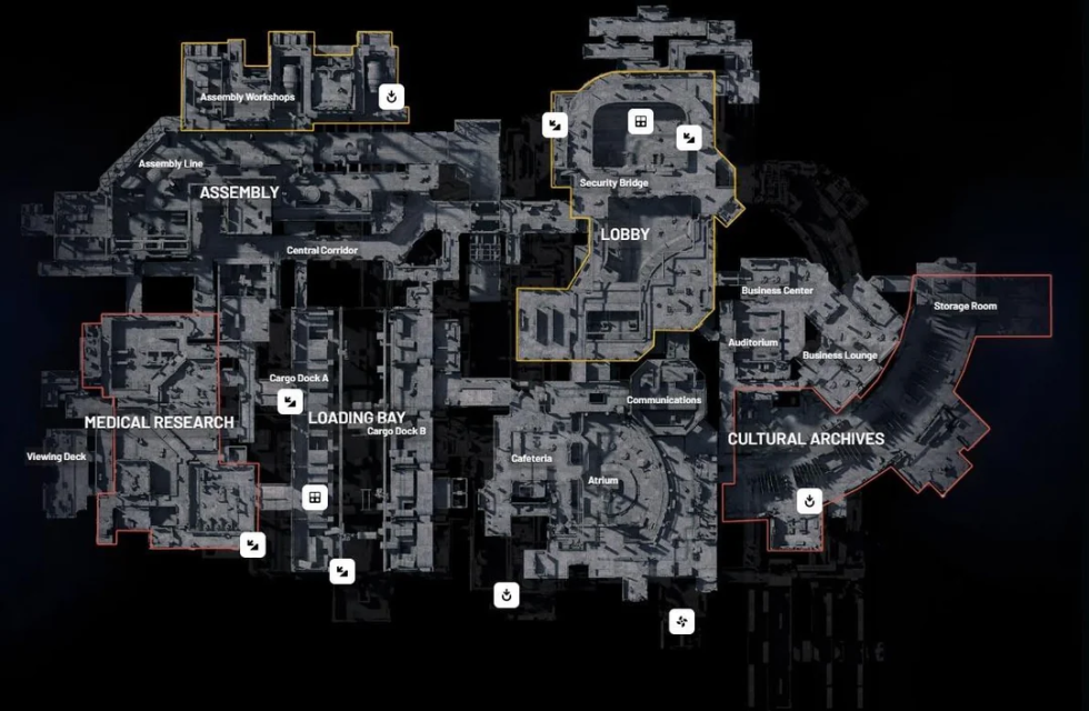 Stella Montis has the most challenging loot routes. It’s best not to start at the main entrance, but via the southern side tunnels, which lead you into small maintenance chambers. These often contain early healing items, utility tools and mods. From there, you gradually move deeper into the experimental areas. A key room lies behind the second airlock; if you reach it before other players do, you’ll have access to rare resources that are otherwise highly contested. The lab corridors are deadly traps – so open each door staggered, with a short peek and smoke ready. Your extraction should never take place through the center, but always via the narrow side tunnel segments.