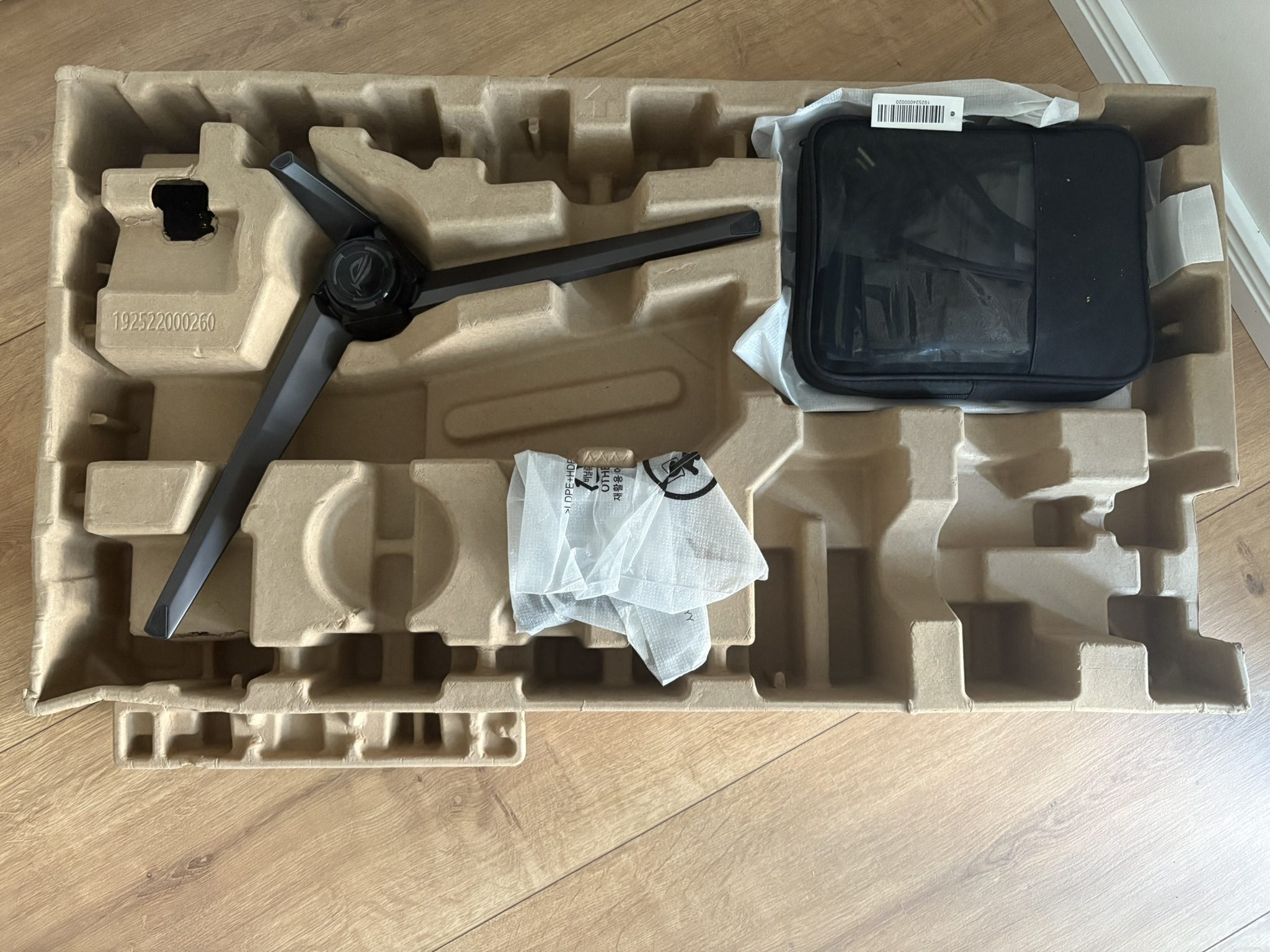 The monitor is functionally packaged, ASUS completely dispenses with polystyrene and instead relies on cardboard – a plus point in terms of environmental friendliness.