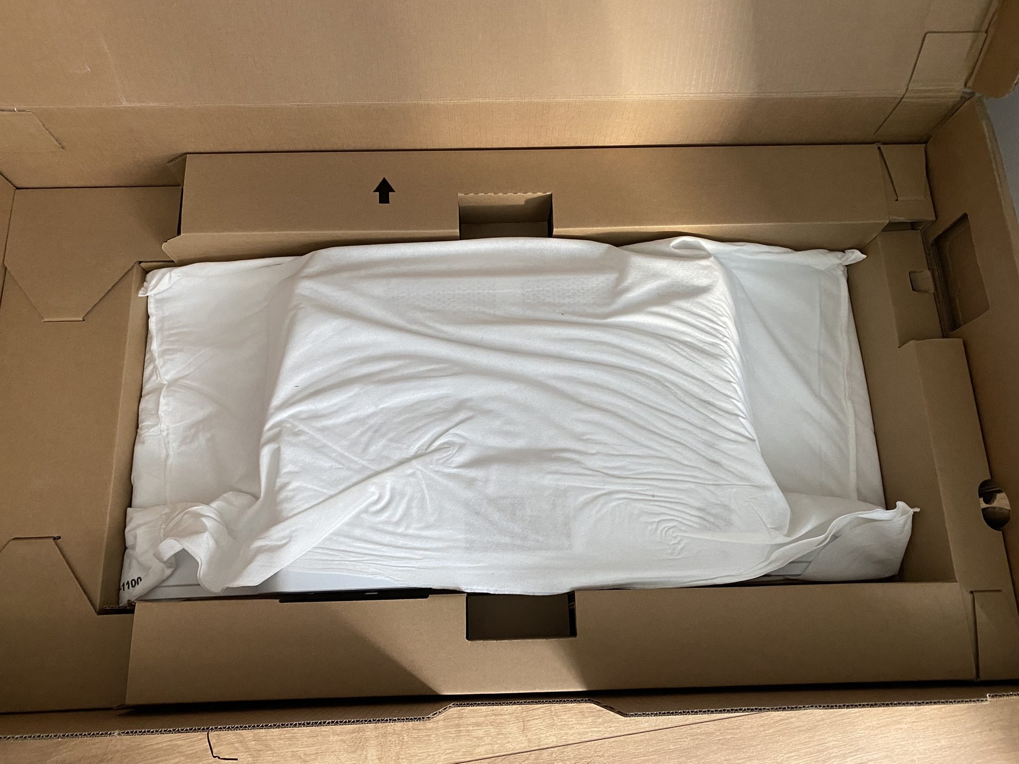 This is the first packaging that consists purely of cardboard, which is very commendable. The packaging is quite sturdy, as I am not the first person to unpack this monitor. As nice as the packaging is, it in no way explains the extra charge!
