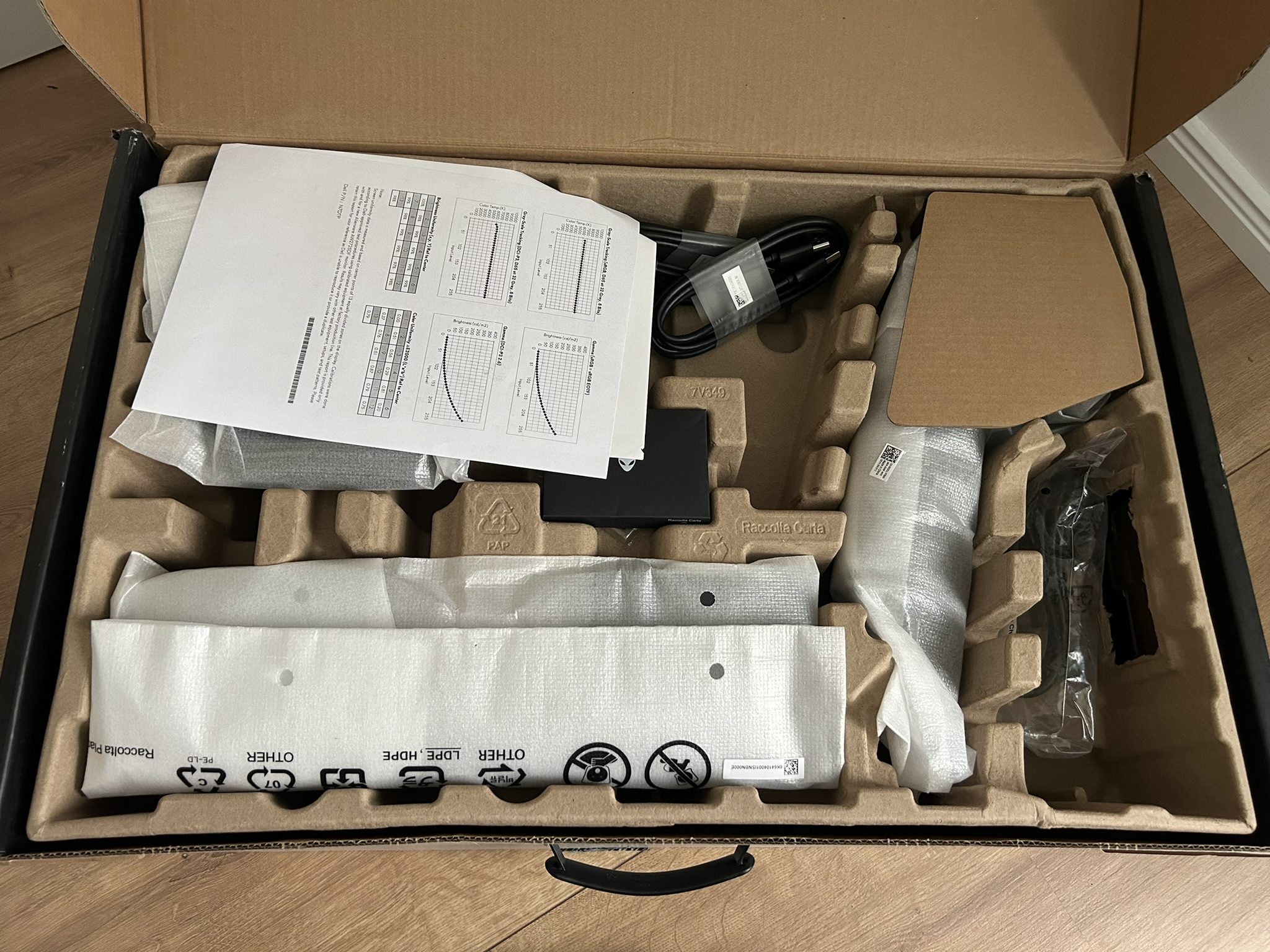 But first things first. Let’s start with the packaging. I like it very much, as the essentials are protected with foam and the rest is stored in practical cardboard packaging. In other words, the monitor is protected and should arrive safely at your home.