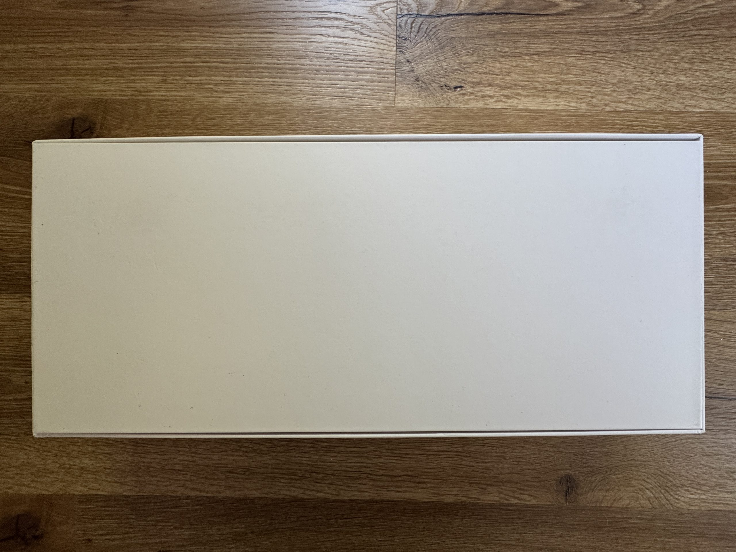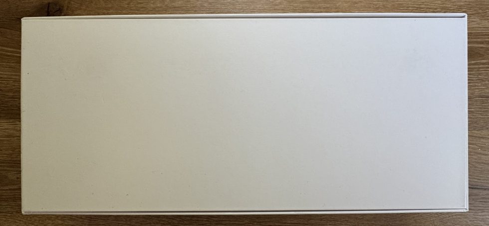 The picture shows a plain white box with no labeling or logos. This obviously serves as the outer packaging or slipcase for the actual product box of the keyboard. The neutral look is restrained and minimalist. The packaging is high quality and sturdy. Simply beautifully made.