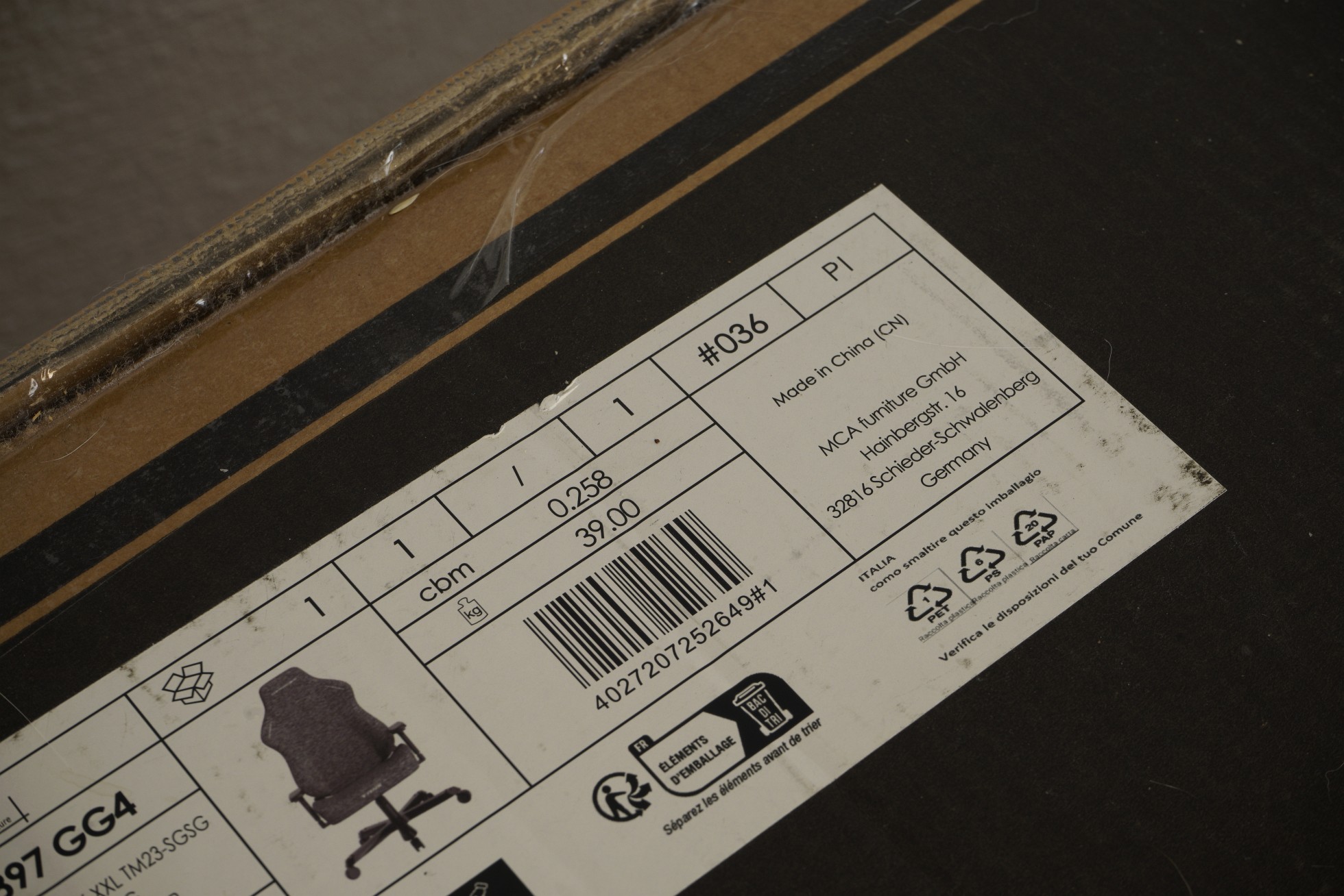 With a gross weight of 39 kg, it really makes the delivery person sweat.