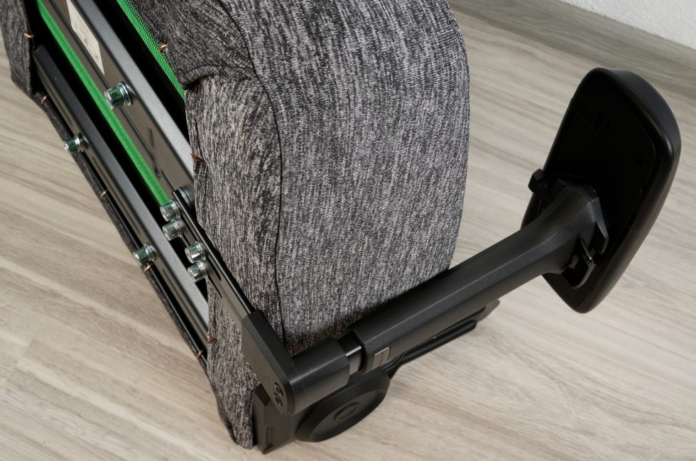I’ll go into more detail about the sturdy armrests later. However, you can already see from the picture that they are set to the “widest” position, but are already touching the seat.