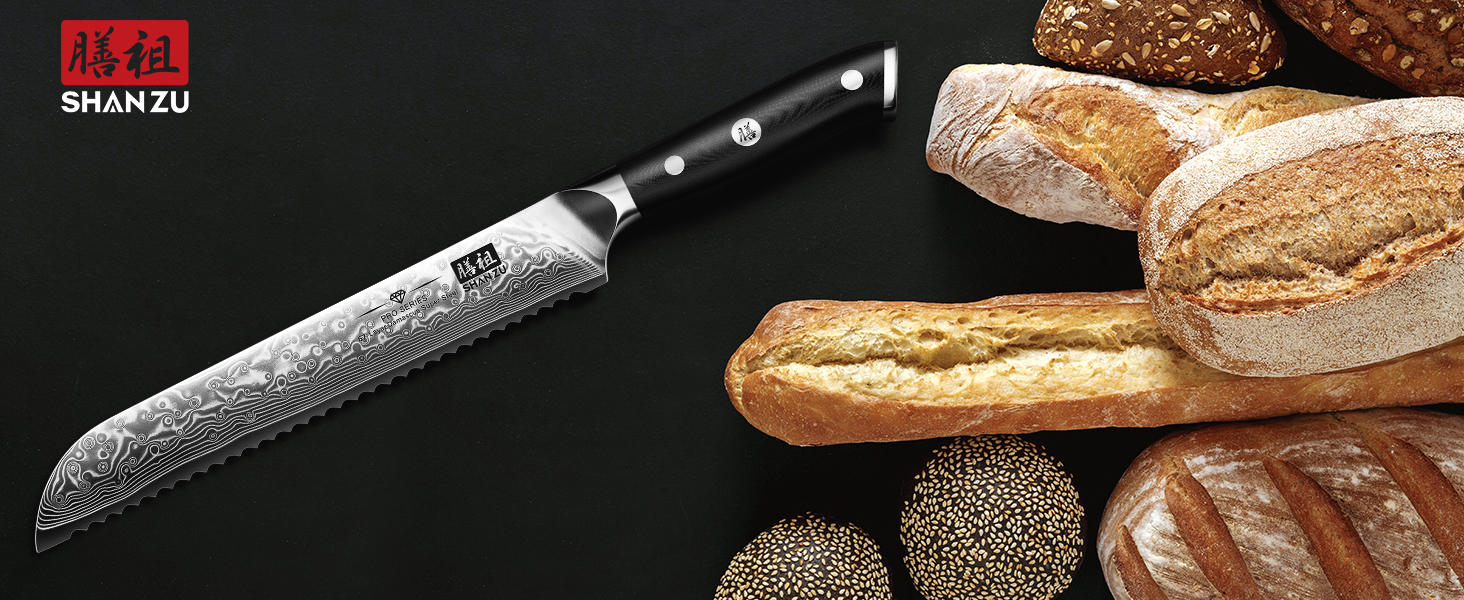 I bought this SHAN ZU bread knife exactly a year ago, before that a Santoku knife from the same series and also without any intention of testing it, but simply because I needed a proper bread knife and the Santoku knife performed quite well. The price of around 65 euros seemed too good to be true for a “67-layer, hand-forged Damascus knife” with Japanese 10Cr15MoV core steel, but what if it cuts properly? The workmanship initially made a clean impression, the blade was well sharpened ex works, and even after a year of occasional use, the edge is still sharp enough to slice a crusty baguette cleanly. So there was nothing to complain about in terms of hardness, sharpness and suitability for everyday use. So far, so good…
